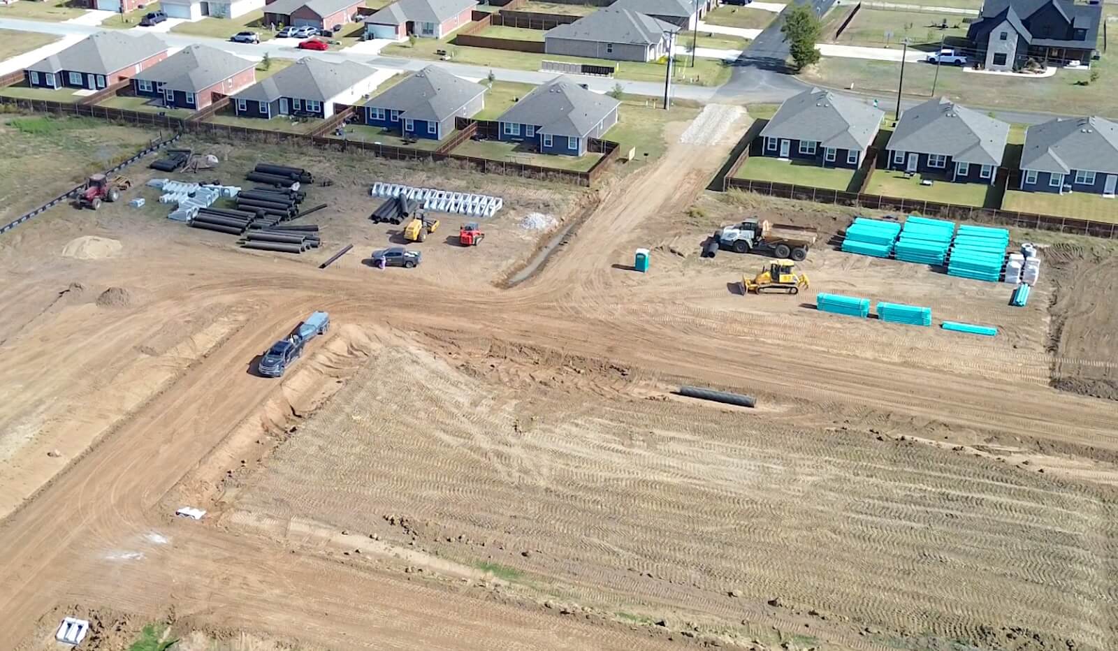 We work with engineers and use GPS-guided equipment to excavate for subdivision development. We then build roadways to meet county specifications, and install utilities for the subdivision.